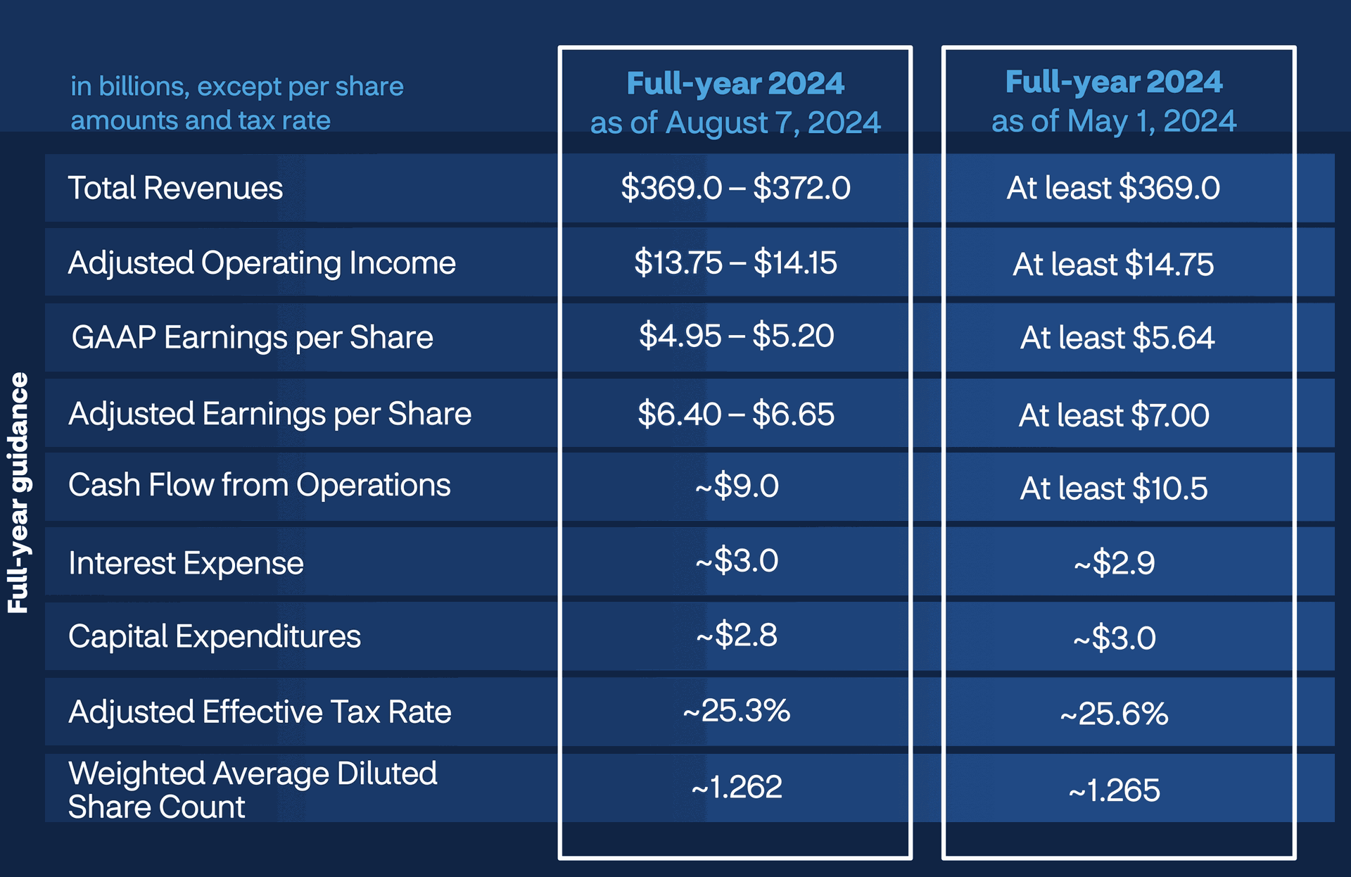 El guidance lo bajaron mucho en el Q1 y de nuevo lo vuelven a hacer en el Q2 hacia un BPA de entre 6,4-6,65 $ por acción. También baja el Cash flow hasta los 9 billions, aunque las ventas como era de esperar suben ligeramente.