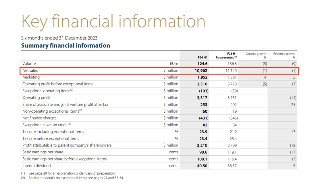 En 2023 anuncia un warning profit de menos ventas en Latinoamérica en el primer semestre de 2024. Las ventas en este sector son de 2.386 M libras.