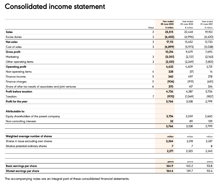 Las ventas son de 23.515 M libras. Cuenta con un margen bruto de 57% y un margen neto del 20%. Han creciendo en torno a un 2,5% anual en la última década.