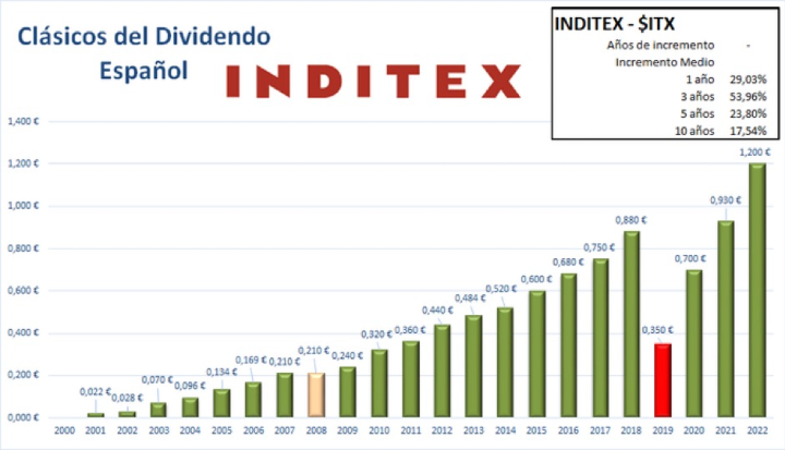 Quitando 2019, 2020 y 2021 (por Covid y la guerra de Ucrania) sus dividendos son crecientes desde 2008. Sus primeros dividendos se remontan a 2001.