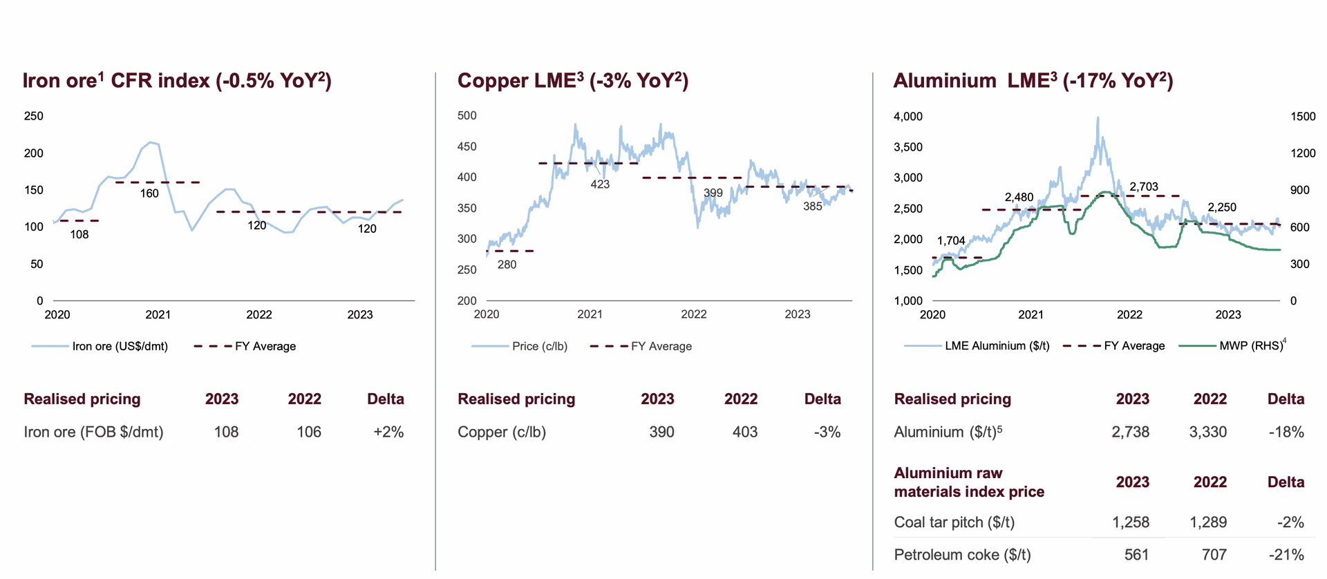 El progreso de la empresa está impulsado principalmente por los altibajos de los precios de los metales en lugar de si la empresa vendió más mineral de hierro, aluminio y cobre.