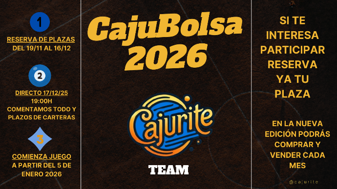 Tenemos un juego de bolsa impulsado desde el grupo privado de Telegram. CajuBolsa 2026 ya está en marcha y puedes ver la clasificación aquí