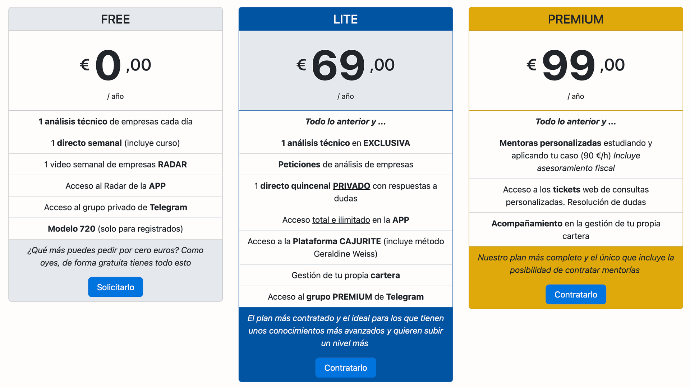 Hazte miembro Premium y disfruta de todas las opciones de nuestra comunidad. Podrás tener acceso a la plataforma de inversion, así como a la gestión de tu cartera (con asesoramiento incluido).